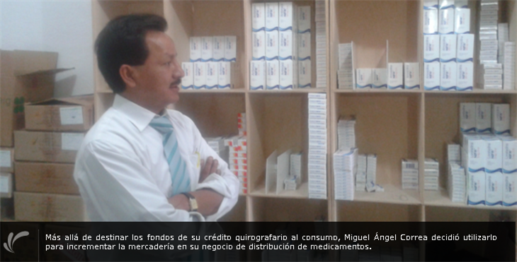 Incrementar los productos en su pequeña empresa de distribución de medicamentos genéricos fue la meta de Miguel Ángel Correa, al solicitar al Banco del IESS, un préstamo quirografario.